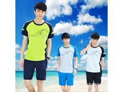 2016夏季男式短袖运动套装T恤纯棉运动服套头短套装球服厂家批发