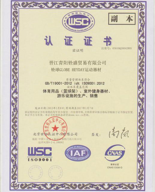晋江铨盛产品认证证书