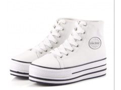 铨球GLOBE新款内增高韩版透气帆布鞋女白色厚底松糕
