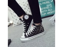 欧美版系带高帮松糕底厚底学生朋克铆钉鞋帆布鞋女鞋胶鞋一件代发