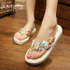 波西米亚拖鞋批发丝绸拖鞋坡跟沙滩拖订单网店爆款人字拖鞋代发