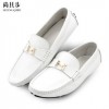 尚其步 夏季新款真皮休闲豆豆鞋男士白色头层牛皮懒人鞋一件代发