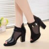 2016春夏季新款蕾丝镂空皮短靴网纱透气粗跟凉鞋鱼嘴高跟女鞋子潮
