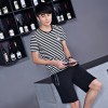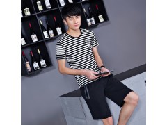 2016夏季新款男士休闲运动套装短袖条纹T恤五分拉链裤韩版修身潮