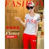 2016夏两件套修身大码短袖七分裤字母卫衣休闲套装女一件代发