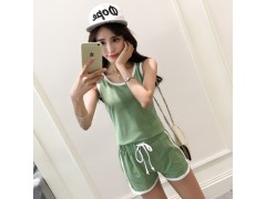 实拍现货2016新款夏季纯棉修身背心短裤运动休闲女跑步套装