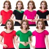 广场舞服装 新款V园领蝴蝶结短袖上衣表演拉丁舞蹈服装练功女春夏