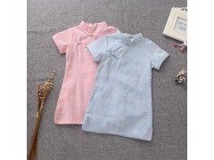 童装 公主风 裙女童 童纯色外贸原单儿童麻棉连衣裙 韩版女童批发