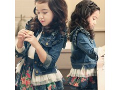 2016春秋季韩版 新品女童外套 木耳边翻领牛仔童外套女童牛仔外