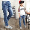 2016儿童秋装批发 韩版春秋女童彩色点点泼漆工艺牛仔裤休闲长裤