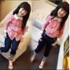 女大童2016春装新款童装韩版百搭细格子长袖儿童衬衫女童时尚衬衣