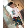 韩版童装批发 2016夏季新款 韩版男童短袖T恤搭配花布短裤两套