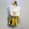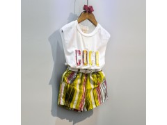 韩版童装批发 2016夏装新款女童韩版字母短袖背心上衣短裤两件套