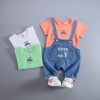 2016夏季童装 韩版中小男童短袖童装 牛仔背带儿童两件套一件代发