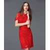 欧洲站2016春夏女装外贸新款修身红色新娘礼服短袖旗袍蕾丝连衣裙