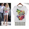 胖mm夏装新品2016大码女装欧美宽松圆领印花上衣假两件纯棉T恤衫