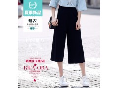 2016夏季新款女装彩色竖条纹压皱雪纺百褶裤裙裤休闲裤阔腿裤女夏