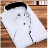 拼接领男士衬衫短袖夏装商务纯色衬衣办公室职业装厂家定做批发