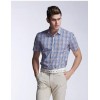 戈德堡男装 2016夏季新品纯棉格子印花修身短袖休闲衬衫男式衬衣