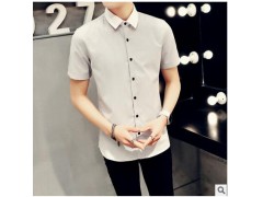 2016夏季新款男士短袖衬衫商务休闲衬衣修身纯棉青年寸衫男装纯色
