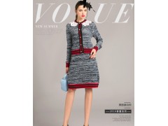 欧美大牌 2016春季新款时尚套装裙女针织开衫修身半身裙两件套