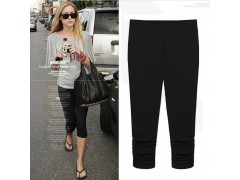 皓娜2016春季新款黑色光泽裤女打底裤女弹力九分显瘦薄款大码外穿