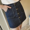 2016春装新款韩版修身 口袋单排扣牛仔裙半身短裙