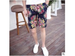 短裤男夏天休闲裤男装五分裤韩版5分中裤印花大裤衩修身沙滩裤子